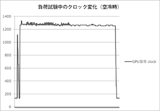 1330MHzを上限にほぼ張り付いている状態。 前ページの空冷状態と比較するとクロックのブレ幅は小さい。 |